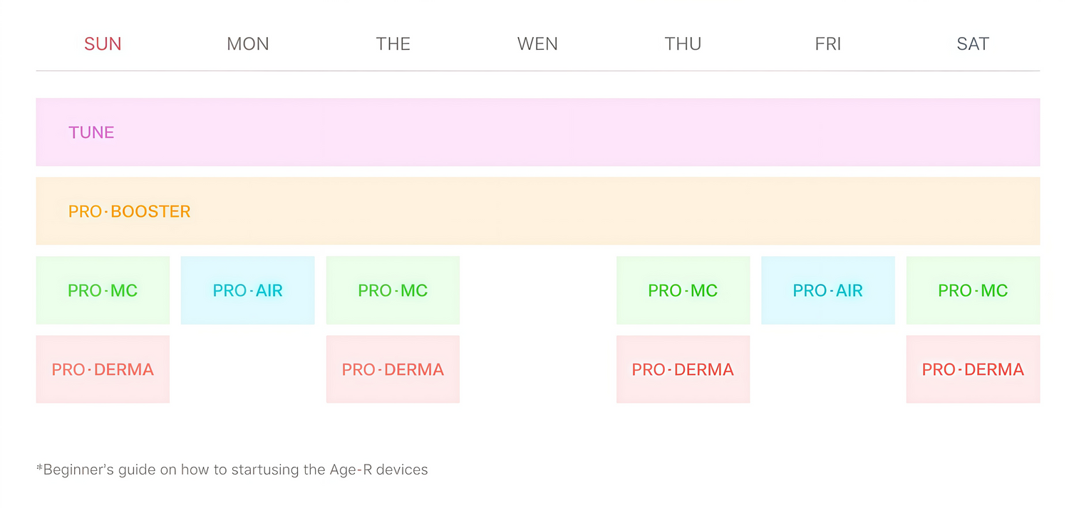 For Booster mode, apply a light serum or ampoule, followed by a thick cream or gel. Then use MC and Derma Shot Mode with any remaining product on the skin, adding more if needed.